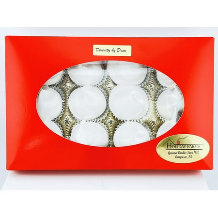 Made with pure cane sugar light corn syrup and fresh pecans. This divinity is light and fluffy with pecans in every bite (If ordered with pecans). Enough for the whole family to enjoy. Comes in a red gift box with oval window. Box pattern may vary. 12 Pieces approximately 12 oz. 340g. Picture has pecans more pictures coming soon.
