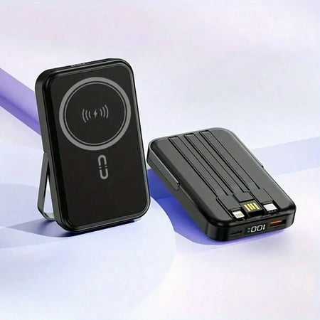 **Product Description:** **The Ultimate All-in-One Power Solution: Charge Wirelessly & On-The-Go! ** Meet the only charger you ll ever need! This 15W Magnetic Fast Charging Power Bank combines cutting-edge wireless technology with complete cable convenience. Designed for the modern user it features a sturdy built-in stand for hands-free viewing while charging making it perfect for watching videos following recipes or on video calls. Whether you re outdoor playing shopping traveling or just relaxing at home this powerful and portable bank keeps all your devices-iPhone Android iPad-powered up without the clutter of extra wires. Its strong magnetic alignment instantly snaps onto compatible iPhone 12-15 models for a secure fast wireless charge. Plus it comes with THREE built-in charging cables (USB Type-C Lightning) ensuring you can charge any device anytime anywhere. With a sleek design and robust power capacity it s the ideal gift for family and friends for birthdays Christmas the winter holidays and the New Year! **Key Features & Benefits:** * **3-in-1 Cable Convenience:** Never hunt for a cable again! This power bank has integrated USB Type-C and Lightning cables making it universally compatible with virtually all phones and small devices. The cables retract neatly into the body for a tangle-free portable design. * **15W Magnetic Fast Wireless Charging:** Experience the future of charging. The strong magnetic ring provides perfect alignment for fast efficient wireless charging up to 15W for compatible iPhones (12-15 series) and Qi-enabled Android devices. Just snap it on and power up! * **Built-in Stand Functionality:** The innovative fold-out stand allows for both portrait and landscape viewing. Enjoy hands-free charging while watching movies following video tutorials or making FaceTime calls. It’s a charger and a phone stand in one! * **High-Speed Wired Charging:** Need even faster charging? Use the included built-in cables for super-fast wired charging supporting both iPhone and Android quick charge protocols. * **Massive Power Capacity:** The high-quality lithium-polymer battery offers a large capacity to fully recharge your phone multiple times. It’s your reliable power supply for all-day outdoor adventures long flights or emergency backup. * **Advanced Safety Protection:** Built with intelligent safety safeguards to protect your devices against overcharging over-current over-voltage and short-circuiting. Charge with complete confidence. * **The Perfect Gift:** Elegantly packaged and incredibly useful this multi-function charger is a fantastic gift idea for birthdays holidays Christmas or a new year s present for anyone who owns a smartphone. **Specifications:** * **Battery Type:** High-Quality Polymer Lithium Battery * **Input:** 5V/2.1A (via included cable) * **Output:** * Wireless: 15W Max (for compatible devices) * Wired: 5V/2.4A Max per port * **Compatibility:** * **Wireless:** iPhone 12/13/14/15 series (MagSafe compatible); all Qi-enabled phones (Samsung Galaxy Google Pixel etc.) * **Wired:** All phones with USB Type-C or Lightning ports. * **What’s in the Box:** * 1 x Magnetic Wireless Charging Power Bank with Stand * 1 x User Manual **Stay Powered Your Way! ** Don’t let a dead battery ruin your moment. This is the most versatile convenient and powerful portable charger on the market. **Click ‘Add to Cart’ now** and ensure you and your loved ones are always connected!