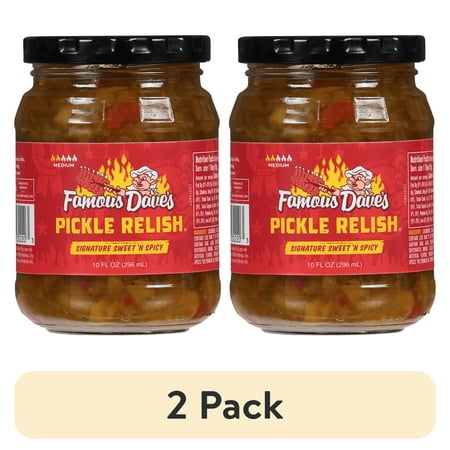 Famous Dave s Signature Sweet N Spicy Pickle Relish 10 fl oz is a tongue-tingling complement to all sandwiches hot dogs and burgers. Or have these fat-free pickles right out of the jar at any time for a sweet and hot snack. Straight from the kitchen of Famous Dave s award-winning master chef our relish has a unique blend of sweet & heat. It is a fat-free kosher pickle plus Famous Dave s Sweet n Spicy Pickle Relish has only 20 calories a serving so it s easy to enjoy them guilt-free.