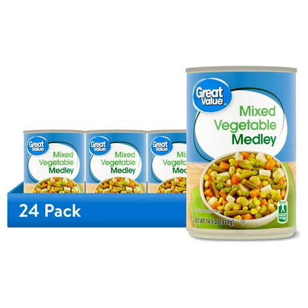 Great Value Vegetable Medley makes it easy and affordable to add vegetables to your diet. These tasty prepared vegetables add color and nutrition to your favorite kosher vegetable recipes or gluten-free vegetable recipes. They are an excellent source of vitamin A. You can use Great Value Vegetable Medley as an instant side dish or toss it into salads or soups for extra color flavor and nutrition. Kosher.No artificial flavors or colors. Naturally gluten-free food. Warnings: Many food and beverage cans have linings containing bisphenol A (BPA) a chemical known to the State of California to cause harm to the female reproductive system. Jar lids and bottle caps may also contain BPA. You can be exposed to BPA when you consume foods or beverages packaged in these containers. Ingredients: Water Potatoes Green Beans Corn Carrots Peas Salt Onion Flavoring Calcium Chloride Added To Help Maintain Firmness.