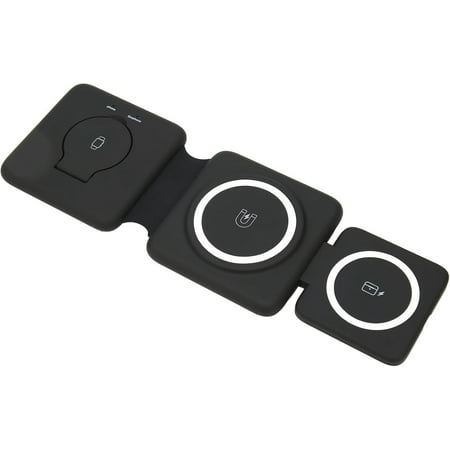 Type: Wireless Charger Interface: Type-C Indicator function: Yes. Product certification: CE/FCC/ROHS/UKCA Material: ABS. Applicable objects: General purpose. Product size: Flat: 229 x 76 x 13 mm Folded: 83 x 76 x 24 mm. Product name: Third generation foldable magnetic three-in-one wireless charger Input parameters: 9V/2A 12V/2A Output parameters: 5W/7.5W/10W/15W Output power: 2.5W. Headphones: Display 3W. Line length: 1 meter Color: black and white. Indicator: 2 indicator lights Material: ABS rubber enamel. Applicable scenarios: Office/home/travel
