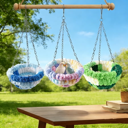 Forest- Birdcage Hanging Plush Hanging Velvet : This parrot is made of soft natural velvet fabric offering comfort and breathability. Its natural-like shape attracts birds more easily and your bird will love sleeping and resting inside. Design: 7cm/2.7inch diameter it perfectly fits the size of small birds ideal for sleeping or breeding. The spacious and comfortable room allows two birds to cuddle together. Easy Installation: Comes with metal washers screws and for easy attachment to the cage. Simply insert your finger into the and tighten the screws to secure the external washers and . Multi-functional : This cockatiel can be used as a breeding burrow playground or sleeping hiding place. The soft velvet surface creates a warm helping your little bird survive the cold winter. Perfect Decoration: This novel and natural-looking cockatiel is the perfect finishing to your birdcage. Includes: 1 bird