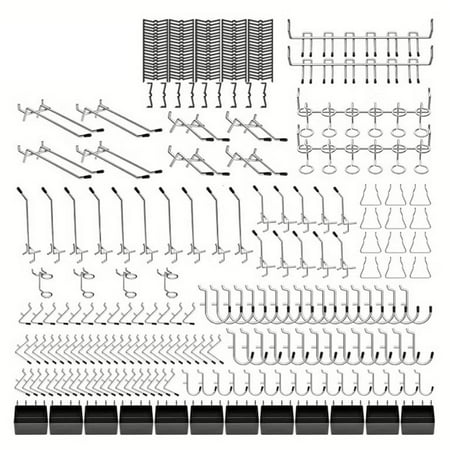 Features: Our pegboard hooks resist rust and corrosions ensuring your pegboard accessories provide stable long terms performances for any storage systems. Great for metal and none metal pegboards. Fits for wall controls pegboards and all other standard sized pegboards. These multipurpose pegboard hooks could be arranged in a compact styles save more space and get effortless accessible for a variety of small hardware or tool none more searching for things among the clutter. Wide Application: Perfect for storage solution on a wide ranges of garage workbench workshop kitchen basement shop school tool sheds factory or warehouse. Great for tool hangers and utility bin it keeps everything in place and within reach. Specifications: Component: Metal Size: As Shown in the Picture Note: Please allow 1-2cm errors due to manual measurement make sure that you do not mind before you order. Due to the difference between different monitors the picture may not reflect the actual color of the item. Package includes: 300Pcs/set Peg Board Hooks