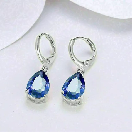 4.00 Ct Pear Cut Cubic Zirconia Sapphire Drop Dangle Earrings in 14K White Gold Plated Sterling Silver – Elegant Women s Jewelry
