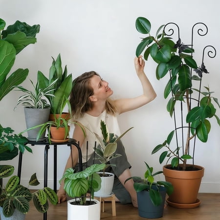 [Plant Trellis for Climbing Plants Indoor and Outdoor]Give your climbing plants the elegant support they deserve. This 4-pack of uniquely designed trellises grows with your plants – easily adjust each stand from 30 inches for tall climbers down to 15 inches for smaller ones. The included pack of 100 soft ties makes training vines a breeze. [Sturdy & Elegant Trellis for Indoor Climbing Plants]Crafted from premium native iron these climbing plant supports feature distinct patterns and are meticulously hand-welded on both sides for lasting strength. Each trellis is treated with a rust-proof coating and finished with a durable powder coat ensuring resistance to rust and damage-indoors or out. With enhanced thickness for superior stability they provide reliable long-term support for your climbing plants in any environment. [Perfect Support ] Our climbing trellis work well to help your climbing plants standing up and vine plants off the ground. Perfect for house plants training jasmine honeysuckle wisteria sugar snap peas pot flowers support green beans and small chili pepper plants. Great little planter trellis – very handy for propping up wayward stems and droopy branches on smallish plants. [Easy to Install and Maintain ]10 second quick installation no tools required.Each trellis features two pieces that design allows for free combination and use catering to different plant-growing needs. Easily expand or resize the plant trellis as your plants mature ensuring the perfect fit for every stage of their development. [Long Lasting Sales Service]We are committed to providing you with higher quality gardening products and a better way of life if you have any questions about our plant trellis for climbing plants before and after the sale please feel free to contact us we will solve for you!