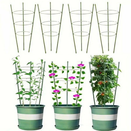 4Pcs Plant Support Tomato Cages for Garden 18 Inches Small Tomato Cages and Supports with Adjustable Rings for Garden Pots Plant Stakes Tomato Trellis Rings for Climbing Plants Versatile Plant Support Cage: Prop up stem plant to grow straightly and healthily. In the season of flowering plants plants can keep flowers upright. Protect tall flimsy stem plant against strong wind heavy rain. With the support ring each stem plant will keep straight. Easy to Use Step 1: Move the ring to adjust the ring position according to plant size. Step 2: Open the Plant Support Cage. Step 3: Use the Plant Cage to fence up the plant. Step 4: Adjust the plant and support frame slightly to fit. Note: mini tomato cages is Not suitable for large plants please check the size before purchasing.