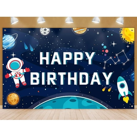 7x5FT Space Theme Party Backdrop Outer Space Rocket Astronaut Theme Studio Background Banner Decorations Photography Supplies for Birthday Party Cool Photo Booth Backdrops