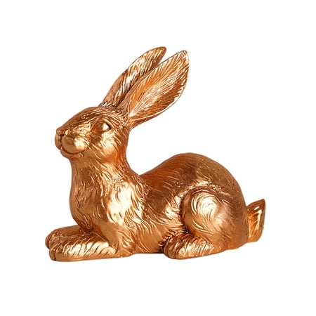 A Easter Golden Bunny Garden Decoration Lying Pose Ornament Simulation Cute Bunny Desktop Accessories 4 Inches