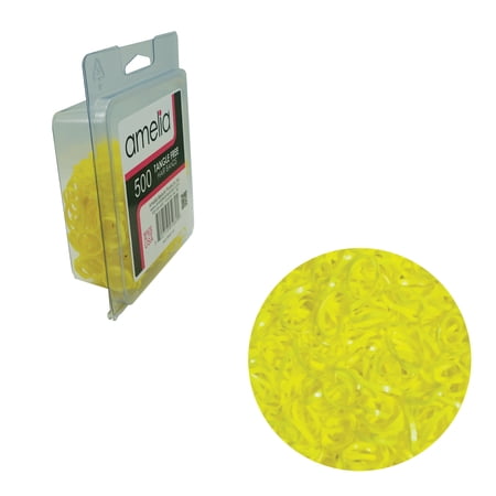 Amelia Beauty 500 1/2in Yellow Elastic Tangle Free Ponytail Holders that help you to create cute fun and unique braids and hairstyles. Premium quality US made hair ties that stay in place all day without snagging and slide out easy. Durable and strong enough hair bands for all ethnic styles including ponytails braids twists dreadlocks and all hair types fine hair thick hair thin hair curly hair beards straight hair long hair or short hair. For all Ages Women Men Kids. Pain Free Snag Free Slide On Slide Off. Convenient clamshells keep the small bands for hair clean and organized. An essential for daily styling accessory and use around the home hobbies office and work shop. Lazos de goma para el cabello para colas de caballo.
