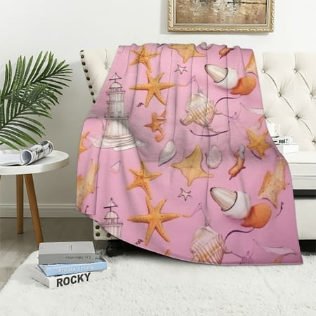 The BCIIG Starfish Lighthouse Warm Lightweight Blanket is crafted from soft flannel fabric made of microfiber polyester material offering a delicate and smooth touch ideal for all ages. This blanket is warm skin-friendly plush dense and non-pilling ensuring a cozy experience. Perfect for year-round use whether for camping picnics napping watching TV or sleeping. Available in multiple sizes for versatile use in different settings. Made from 100% premium flannel the blanket is extra-soft breathable and durable suitable for all seasons. It is a multi-purpose blanket great for indoor and outdoor activities. The easy-care feature allows for machine washing without shrinkage or fading providing a long-lasting comfortable experience.