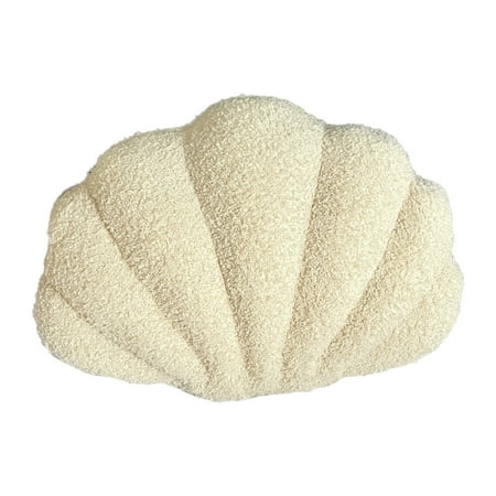 Beige Creative Shell Shape Throw Pillow Cushion For Home Sofa Office Decor Flock Material Soft Plush Decorative Accent Pillow 13.78X9.84X1.18 Inches