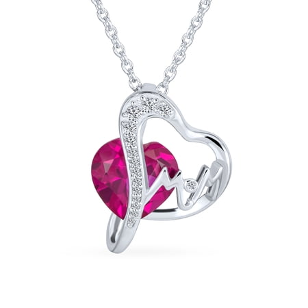 This stunning affordable pink necklace is an elegant birthstone jewelry piece fit for a queen. Featuring breathtaking simulated ruby hearts it dazzles with pave CZ and a big red heart. Rhodium plating ensures tarnish resistance. Feel like a sparkling princess with this crystal necklace. Perfect for bridal parties and July birthdays or as a holiday gift.