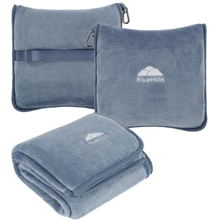 BlueHills travel blanket for airplanes is a must-have essential for any long journey offering utmost comfort and convenience. This grayish-blue plush airline blanket is an exceptional travel accessory that is not only lightweight but also highly portable. The extra-soft design of this travel blanket is made from premium plush material providing a touch of cozy comfort perfect for the chilly nights on a plane. Moreover the accompanying plush travel pillowcase hand luggage belt and backpack clip make it easy to pack and carry in your carry-on. Moreover this travel-size blanket comes equipped with a matching soft plush pillowcase/travel case a hand luggage belt and a backpack clip ensuring easy packing within your carry-on bag. An ideal choice for any traveler aside from its softness and warmth this airline blanket also doubles as a cozy blanket or travel pillow during flights international travel airports road trips camping RVs and concerts. Lightweight and packable this essential travel item ensures you can rest comfortably whenever and wherever you want. This grayish blue air travel blanket is a must-have for any travel enthusiast elevating the experience of travel with its superior comfort and portability.