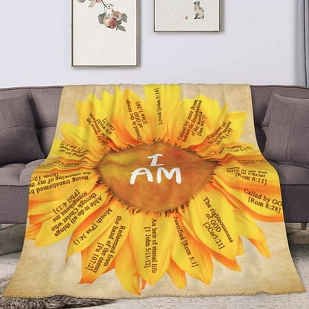 BOOPBEEP Christian Gifts Inspirational Blanket with Bible Verse Prayers Spiritual Religious Gift for Women Birthday Christian Gift for Mom Wife Healing Throw Blanket (Sunflower-Yellow 50 x60 )
