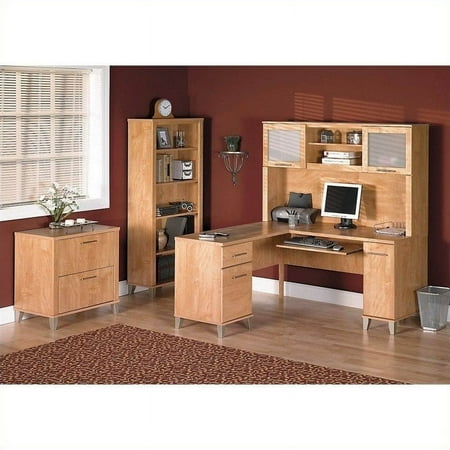 Somerset Tall 5 Shelf Bookcase in Maple Cross – Engineered Wood (included quantity: 1) Turn any space into your own personal library with the Bush Home Somerset Tall 5 Shelf Bookcase. With a tapered leg design and your choice of several attractive finishes this bookshelf is a perfect way to organize any home office or living space. Two shelves are fixed to provide structural strength and three are adjustable so your items are sure to fit. The height of the Bookcase matches that of a Somerset Desk and Hutch combination (sold separately) to create a coordinated appearance. Its sturdy construction and durable laminate finish allow you to display books decorations and more for years to come. This Tall Bookcase is tested to meet ANSI/SOHO standards for safety and performance and is backed by the Bush Home 6 Year Manufacturer s Warranty. See the full Somerset Collection for coordinating items to expand your home office. American made with U.S. and imported parts. Features: 30W x 13D x 65H Tall 5 Shelf Bookcase provides plenty of space to organize books or display decorations Three adjustable shelves move up and down to accommodate items of various sizes Two shelves are fixed for stability; each of the Tall Bookcase s shelves supports up to 50 pounds Transitional styling includes tapered leg accents and an elegant finish Tall bookshelf comes with wall attachment hardware for family-friendly safety and security Available in your choice of several attractive finish options for a look that matches any space Tested to meet ANSI/SOHO standards for safety and performance Backed by the Bush Home 6 Year Manufacturer s Warranty American made with U.S. and imported parts Specifications: Product Color: Maple Cross Product Dimensions: 29.57 W x 12.81 D x 65.21 H Product Weight: 72 Assembly Required: Yes Warranty: 6 Years Somerset 2 Drawer Lateral File Cabinet in Maple Cross – Engineered Wood (included quantity: 1) The Bush Home Somerset 2 Drawer Lateral File Cabinet provides an appealing home office storage solution. Two large file drawers open on smooth full-extension ball bearing slides for easy access to letter and legal-sized documents even those all the way at the back. Drawers are designed to open one at a time for maximum stability making this filing cabinet a safe and family-friendly addition to your home. The height of the 2 Drawer File Cabinet matches any Somerset Desk (sold separately) to allow for an extended work surface when placed side by side. Transitional styling includes tapered leg accents your choice of attractive finishes and contemporary metal hardware. This lateral filing cabinet is tested to meet ANSI/SOHO quality standards for safety and performance and is backed by the Bush Home 6 Year Manufacturer s Warranty. American made with U.S. and imported parts. Features: 30W x 17D x 29H Lateral filing cabinet s drawers accept legal letter and A4-size paperwork Full-extension ball bearing slides provide easy access to documents even those all the way in the back Open Safe drawers are designed to extend one at a time for maximum stability on any surface Transitional styling includes tapered legs an elegant finish and contemporary metal hardware 2 Drawer File Cabinet matches the height of coordinating Somerset Desks (sold separately) for an extended work surface Available in your choice of several attractive finish options for a look that matches any space Tested to meet ANSI/SOHO standards for safety and performance Backed by the Bush Home 6 Year Manufacturer s Warranty American made with U.S. and imported parts Specifications: Product Color: Maple Cross Product Dimensions: 29.72 W x 16.69 D x 29.15 H Product Weight: 77 Assembly Required: Yes Warranty: 6 Years Bush Furniture Somerset 60W L Desk in Maple Cross – Engineered Wood (included quantity: 1) Maximize the potential of your home office with the Bush Furniture Somerset 60W L Shaped Desk. Create your remote work headquarters with space for a computer phone printer and more on a surface that features wire management slots for keeping cords and cables in order. A convenient pull-out shelf provides a perfect place to keep a keyboard or laptop and the Desk also includes a vertical storage cabinet with an adjustable shelf. Place pens paper and more in the box drawer and enjoy a file drawer gliding on smooth ball bearing slides for an easy reach to documents. Transitional styling includes a stylish finish with tapered legs and contemporary metal hardware for an alluring appearance. This quality office desk is tested to meet ANSI/SOHO standards for safety and performance and is backed by the Bush Furniture 6 Year Manufacturer s Warranty. American made with U.S. and imported parts. Features: 60W surface with wire management provides plenty of room for a computer phone printer and more Finished back allows L Shaped Desk to be placed anywhere in the room Includes a pullout keyboard/laptop tray that can mount to either side for a custom configuration Vertical storage cabinet has an adjustable shelf for storing items of various sizes File drawer glides on smooth ball bearing slides and accommodates letter-sized documents Box drawer stores office supplies Accepts Somerset 60W Hutch (sold separately) Tested to meet ANSI/SOHO standards for safety and performance Backed by the Bush Furniture 6 Year Manufacturer s Warranty American made with U.S. and imported parts Bush Furniture Somerset 60W Hutch for L Desk in Maple Cross – Engineered Wood (included quantity: 1) The Bush Furniture Somerset 60W Hutch offers the storage and display capacity you need to complete your beautiful and functional home office. The Hutch mounts securely on either side of the coordinating 60W L Shaped Desk (sold separately) for increased capacity. Storage options include a large open compartment that is perfect for books binders or decorations as well as a pair of lift-up frosted glass doors that provide concealed storage to eliminate visual clutter. An adjustable shelf 