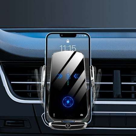 PAVEOS Wireless Car Charger Mount Auto Clamping Phone for Car New Upgraded Model 15W Fast Charging/Magnetic Charging For Android And IOS Feature: New experience of smart technology: a new generation of car smart wireless bracket,It adopts smart sensing technology which can be operated with hand. When putting the phone in the bracket the clip will automatically close and provide a firm and stable support. Just tou- the sensing area the arm will automatically open and then place the mobile phone on the wireless charger it will automatically identify the device. Safe and beautiful: stylish design electroplated metal texture your phone from damage. The rear panel is made of glass panel to speed up the heat dissipation.15 times protection no need to the phone case. When charging it will intelligently adjust the power between 15W and 10W. Equipped with overvoltage protection overheat protection magnetic field protection short circuit protection etc. Adjustabl-e angle: 360-degree rotation can achieve the view and easy-to-use functions 5.0-7.0 inch mobile phone screen. gifts: Buy car smart wireless bracket and get a full range of magnetic heads all mobile phones. UPGRADED new series which charging faster and more stable compared with the old ones. Phones without wireless charging can also enjoy the fu-n of car smart wireless brack-ets you can enjoy after- service. Rechargeable and luminous: delicate a-tmosphere lamp LED luminous design full of sense of technology. Product parameters: Product name: X5 wireless charger Product principle: opening and closing Securing mode: mechanical locking composition: ABS+PC (vacuum plating process) Compatible size: 5.0-7.0-inch mobile phone Output power: 15W/10W/7.5W/5W Package size:14.8×9.8×6.5cm/5.83×3.86×2.56inch Gross weight:215/0.47lb The Package Include: 1x On-board wireless charger 1x Manual 1x Data cable 1x Adapter 1x Clip Our wireless charger is suitable for office and home use.