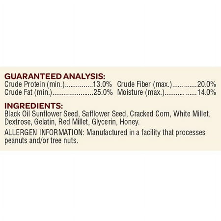 Kaytee Cardinal Cakes Wild Bird food offers the premium ingredients that Cardinals love to eat in an easy convenient ready-to-feed cake. Gives your backyard birds consistent energy and nourishment. Just slip the seed cake into a Kaytee Cake Feeder for convenient feeding. There’s no feeder cleanup or removal of old seed to worry about. Seed cakes last longer than loose seed providing you with longer viewing time. Birds can’t push loose seed out of the feeder so there’s less waste. The special honey seed formula also attracts a wide variety of birds.