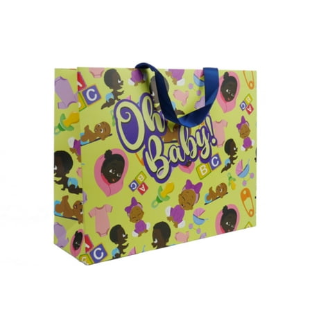 Oh Baby! Celebrate the joy of new life with our original baby gift bag! This versatile gender neutral design allows for this bag to be given for not only Baby Showers but Gender Reveals too! On gift bag: Oh Baby! Navy Satin Ribbon handles. Made with 250 GSM paper Approx. 15 W x 12 H x 4.72 D