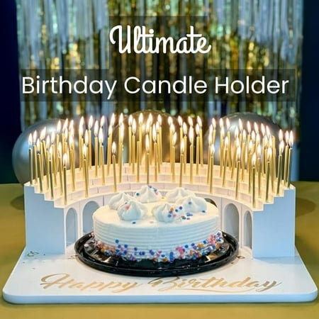 New product! Celebration Stadiums are the highlight moment of any birthday party. Remember as a kid the excitement you had blowing out a birthday candle for every year? Now you can re-experience that joy and make a wish with up to 110 candles. Makes for a spectacular display and beautiful photos and videos. Reusable for years of celebrations. Holds up to 110 birthday candles in a stunning semi-circle around a cake. The modular design allows you to display any number of candles from 1 to 110. Featured in June 2023 as one of REAL SIMPLE s 6 Clever Items to Simplify Your Life. Includes: 100 tall gold birthday candles 10 modular 10-candle stands + 10 holder clips for single candles 10 paper mini-flags with flagpoles and stickers for decorating Storage bag No assembly required Keeps candle wax drips off the cake. More sanitary avoid blowing directly on to the cake surface. Flame-resistant material. Use as is for an unforgettable display… or if you re crafty embellish with your own creative decorations. Size when set up for 100 candles: 20 across x 13 deep x 5 height. Comes in a storage box size: 12 long x 6 1/4 wide x 4 height.