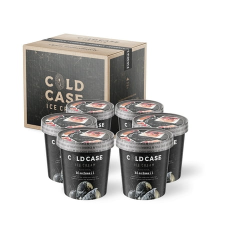Our 6 pack Blackmail box features 6 pints of our Blackmail Ice cream – sweet cream infused with edible charcoal marshmallow creme swirls & cookie sandwich chunks.