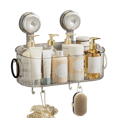 Darzheoy Suction Storage Box Bathroom Organizer No Drill Wall Mounted Shower Storage Portable Removable Storage Basket for Bathroom Kitchen Suction Cup Shelf Features: [No-Drill Bathroom Suction Storage Box]The bathroom suction storage box features powerful suction cups allowing the suction cup shelf to firmly adhere to bathroom walls without the need for drilling ensuring your wall mounted bathroom organizer stays in place and your surfaces remain undamaged. [Removable and Convenient]This removable storage basket can be easily detached from the wall making cleaning and repositioning . The no-drill bathroom shelf allows you to change its position without leaving any marks or on your walls. [No-Drill Bathroom Suction Storage Box]Crafted with clear acrylic this acrylic wall shelf and shower caddy showcases a for a modern look. The transparent bathroom shelf blends into any décor providing functional organization with a stylish touch. [Functional Hanging Storage]The suction basket organizer includes hooks for hanging items making the hanging storage rack ideal for organizing toiletries shower caddies and bathroom accessories. [Effortless Installation Process]Installing the transparent suction cup wall shelf for shower is and -just clean the wall press the suction cups and attach the corrugated suction cup storage . Product Description: The product includes 1* storage box