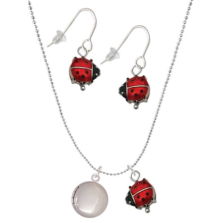 Silvertone 13.5mm Round Locket – Red Lucky Ladybug Necklace and Dangle Earrings Set. Opens and both sides are available to add your keepsakes. This adorable hand painted enamel ladybug is approximately 0.5 inches wide and 0.4 inches long. Ladybugs are good luck symbols and said to give blessings. This female jewelry set comes with an 18 inch faceted ball chain necklace that has a spring ring clasp. The necklace chain is light weight and sparkly. French earrings are stainless steel hooks. PLEASE NOTE: Our products are lead safe but are not intended for children 14 years and younger.