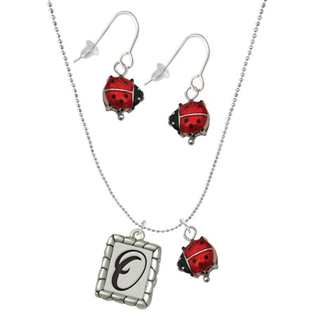 Silvertone Pebble Border Initial – O Red Lucky Ladybug Necklace and Dangle Earrings Set. Initial is approximately 0.74 x 0.65 x 0.15 inches (HxWxD) not including loop. Same on front and back. This adorable hand painted enamel ladybug is approximately 0.5 inches wide and 0.4 inches long. Ladybugs are good luck symbols and said to give blessings. This female jewelry set comes with an 18 inch faceted ball chain necklace that has a spring ring clasp. The necklace chain is light weight and sparkly. French earrings are stainless steel hooks. PLEASE NOTE: Our products are lead safe but are not intended for children 14 years and younger.