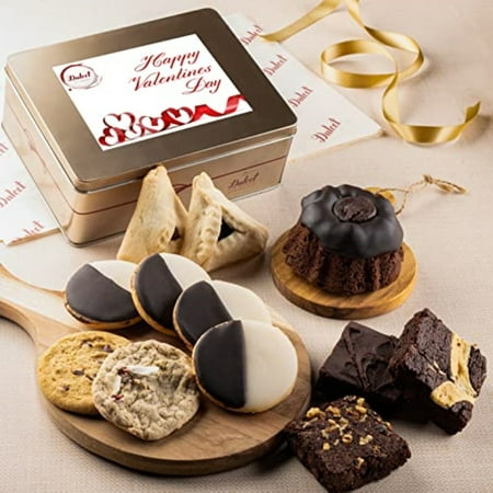 Dulcet Gift Baskets Delicious Classic Happy Valentine Tin of Gourmet Pastries 12 Counts per pack. Enjoy the cookies with the full knowledge that they are baked from the finest ingredients like Belgian chocolate and Grade-A eggs. A sophisticated tin holder contains brightly decorated cookies sinfully delicious brownies and other baked goodies. Far more appreciated than the standard gift these gastronomically delightful gifts are the way to go for a great birthday gift! Multipack Quantity: 1