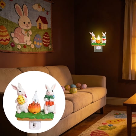 Easter Bunny And Egg Night-Light US-Plug LED Accents Lamp For Spring Decoration And Kids’ Rooms Features: Festive – acrylic bunny holding a cracked egg glows soft white for Easter . Auto dusk-to- – built-in sensor turns on at night off at daylight; switches needed. Cool-touch LED – 0.5 W bulb stays cool and uses