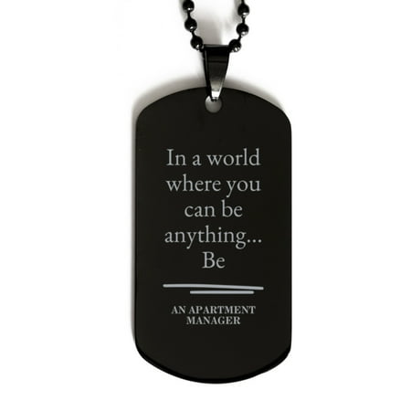 Apartment Manager Dog Tag Necklace Gift With a Message. This dog tag is made of polished stainless steel and the message is engraved on very high-quality metal so that it has an incredible shine that you will love every time you look at it. This dog tag also comes with a matching 60cm ball-style chain. It s the perfect gift for Apartment Manager on any occasion. Apartment Manager Dog Tag Necklace Material: Stainless Steel Dog Tag Size: 2.8 x 5.2 cm Necklace Length: 60 cm It s laser engraved on very high-quality metals giving it an incredible shine that you will love every time that you look at it.
