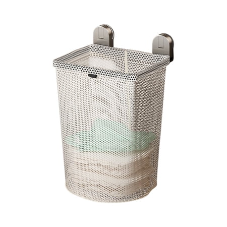 Grey Suction Cup Dirty Clothes Basket Foldable Mesh Wall Mount With Ventilation And Hook For Bathroom Laundry Room And Shower Door Storage Plastic Material