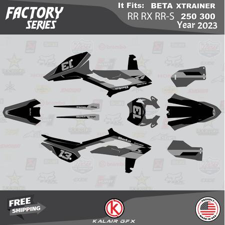 *** WE OFFER FREE CUSTOM RIDER NAME & NUMBER *** Your custom name & number must be provided during checkout under “message to seller” or through Walmart messaging immediately after placing the order. Otherwise graphics as shown in the listing are shipped. Fits Beta Xtrainer RR RX RR-S 250 300 (2023) OEM or OEM-replica plastics. The complete graphics kit includes all the pieces shown in the listing. Plastics are NOT included. Thicknesses for durability against scratches and falls: 9 Mil – for light use 16 Mil – high durability 21 Mil – max durability Market-leading designs printed on triple-layered vinyl with a glossy UV protective layer and ultra-aggressive adhesive specifically engineered for motocross and ATVs Precision cut ready to install All materials including vinyl and laminate are made in the USA