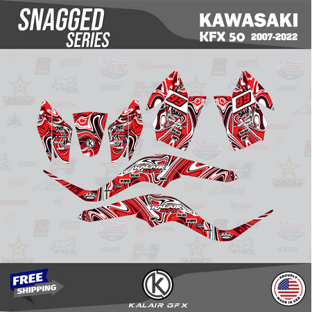 *** WE OFFER FREE CUSTOM RIDER NAME & NUMBER *** Your custom name & number must be provided during checkout under “message to seller” or through Walmart messaging immediately after placing the order. Otherwise graphics as shown in the listing are shipped. Fits Kawasaki KFX50 (2007-2022) OEM or OEM-replica plastics. The complete graphics kit includes all the pieces shown in the listing. Plastics are NOT included. Thicknesses for durability against scratches and falls: 9 Mil – for light use 16 Mil – high durability 21 Mil – max durability Market-leading designs printed on triple-layered vinyl with a glossy UV protective layer and ultra-aggressive adhesive specifically engineered for motocross and ATVs Precision cut ready to install All materials including vinyl and laminate are made in the USA