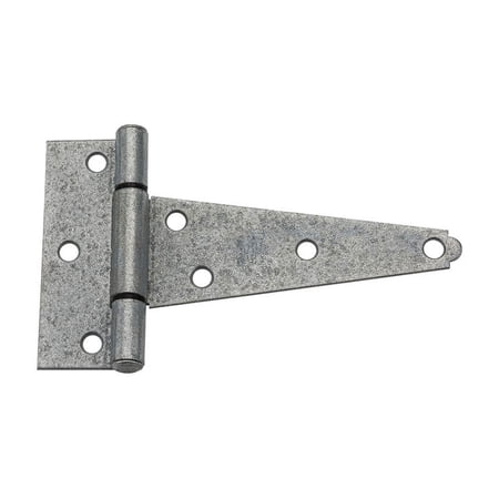 Catalog model No. V286 thru 286BC. The extra heavy T-hinge is designed for applications with narrow mounting surfaces such as barn and shed doors storage bins tool boxes and gates. Offset screw holes for extra strength to prevent wood splitting. Tight pin for right or left hand applications. Galvanized hinges have WeatherGuard coating for maximum protection from outdoor elements.