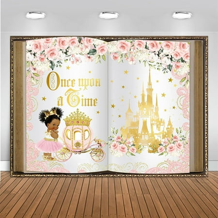 Once Upon a Time Birthday Backdrop Pink Floral Gold Castle for Girls Princess Birthday Party Decoration Banner for Girls First Birthday Photography Background Supplies