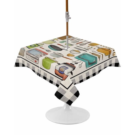 Outdoor Tablecloth with Umbrella Hole and Zipper to Brighten Up Your Patio Outside Tables Product Description Tablecloths Size Dimensions: Round 54 Inch / 60 Inch Square 54×54 Inch / 60×60 Inch Rectangle 52×70 Inch / 54×80 Inch / 60×84 Inch / 60×102 Inch / 60×120 Inch Exquisite Workmanship Made of reusable polyester fabric which gives you superior strength and durability and also provides the convenience of spillproof & waterproof that your dining events require. Smooth Zipper Design All outdoor tablecloth sizes have an option with a smooth zipper and an umbrella hole. Easy To Install Zip on and off easily around patio table umbrellas no need to remove the patio umbrella. Vibrant Pattern Our tablecloths come in a variety of vibrant colors and patterns for each season and occasion. Give your space a real personality the perfect gift for various holidays. Ideal Garden Decor Embellish your patio umbrella with beautiful outdoor tablecloth enjoy a great sense of beauty. Impress your guests and bring you a good mood. A good decoration for spring and summer. More Scene Uses Matches delicately and create unique style for your party ceremony holidays banquet hotel diner wedding cafe catering picnic BBQ camping buffet outdoor and indoor use. Perfect decor for sandy beach garden and coffee shop. Special Note Both machine and hand washable with gentle cycle and lay flat to dry no bleach iron on low heat if required. Please measure your table prior to purchasing to ensure the best fit.
