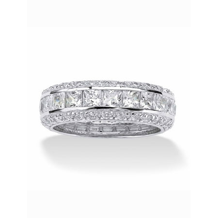 PalmBeach Jewelry exclusive. Magnificent round and princess-cut cubic zirconia on this eternity band capture the luxury of a design classic glittering with 4.17 carats T.W. in platinum-plated or Yellow Gold-Plated sterling silver. (All carat weights are approximate and may vary slightly from those listed.) 52414RNG