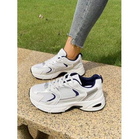 Modern Retro Athletic Sneakers Americana-inspired contrast color running shoes for women. These versatile sneakers are perfect for sports outdoor activities campus wear or daily urban exploration. Featuring breathable mesh upper and thick cushioned outsole for ultimate comfort and support during movement. Material: Microfiber Leather Outsole Material: Rubber Ideal for Hiking & Outdoor Activities Available in stylish Blue color Hot Search Keywords: Athletic Shoes Retro Running Shoes Breathable Mesh Sneakers Casual Outdoor Footwear Versatile Hiking Boots Urban Exploration Shoes Comfortable Walking Shoes Experience the perfect blend of retro style and modern comfort with these must-have athletic sneakers!