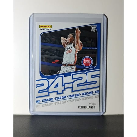 Capture a piece of basketball history with the exclusive Ron Holland II Rookie Card 2024-25 Panini Year One #5. Coveted by sports enthusiasts this limited edition card is one of only 613 in the world making it a rare collectible.The vibrancy of the card s design is parallel to Holland s stellar career with the Detroit Pistons. Beautifully crafted by Panini the world-renowned sports merchandise brand it illustrates Holland s dynamic energy on the court.MEMORABLE MOMENTS FROZEN FOREVER: A high-gloss full-color action shot captures Holland s formidable prowess the heart of Pistons triumphs.As a valued addition to your collection or as a thoughtful gift to a Basketball aficionado make your purchase today. Seize the opportunity to own this gem; the Ron Holland II Rookie Card 2024-25 Panini Year One #5 the pride of Basketball Pistons.