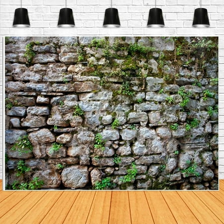 Rustic Stone Wall Backdrop Overgrown Wall Texture Photography Background for Party Decorations Banner Supplies Photo Booth Props