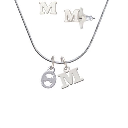 Small Greek Letter – Theta – – M Initial Charm Necklace and Stud Earrings Jewelry Set