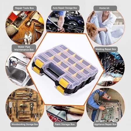 Anyone Who Works On Diy Projects Does Home Repairs Or Spends Time In Their Workshop Knows How Frustrating It Is To Lose Track Of Small Hardware Bits And Tiny Tools. Screws Drill Bits Nails And Connectors Roll Around Loose Getting Mixed Up And Difficult To Find When You Need Them Most. This Double Sided Plastic Tool Box Solves That Problem Completely With Customizable Plastic Dividers That Let You Create The Perfect Compartment Size For Every Small Item You Need To Store. As A Reliable Tool Storage Box It Features Secure Latches To Keep The Lid Closed Tight During Transport So Contents Never Spill Out When Moving Between Your Home Car And Workshop. This Locking Storage Box Works As Both A Small Parts Storage Organizer And A Compact Small Storage Bin For All Types Of Hardware And Accessories Keeping Your Entire Workspace Sorted And Clutter Free.