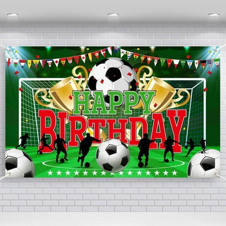 Soccer Theme Cool Party Backdrop Sports Themed Party Decoration Soccer Happy Birthday Banner Wall Hanging Decor Photo Background for Holiday Birthday Party Supplies