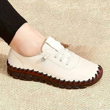 Women s Mules Sneakers – Fashionable & Comfortable Flat Shoes Discover the perfect blend of style and comfort with these Women s Mules Sneakers. Designed for modern urban fashion these shoes feature a sleek minimalist design that complements any outfit.Crafted from high-quality microfiber upper material these shoes offer unparalleled skin-friendly comfort and durability.The soft sole made from specially designed handmade beef tendon provides exceptional cushioning and all-day wearability. The sea glass insole ensures breathability and keeps your feet dry at all times. These flats are perfect for everyday wear whether you re walking jogging or running errands. Their non-slip outsole offers extra stability and grip while the round toe design ensures a natural fit. Lightweight and flexible these shoes provide excellent resilience and noise-free walking performance. Material: PU Leather Upper Sole Type: Soft Handmade Beef Tendon Sole Insole Material: Sea Glass Insole Heel Height: Flat Toe Shape: Round Toe Strap Type: Lace Up Upper Height: Low-top Pattern Type: Plain Style: Sporty Color: Beige Perfect for casual wear office attire or outdoor activities these shoes are versatile and comfortable for any occasion. Their ergonomic design ensures a secure fit with a shape that follows the natural structure of your foot. Hot Search Keywords: women s mules sneakers fashionable flat shoes comfortable walking shoes breathable insole shoes minimalist urban fashion